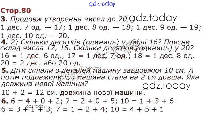 Ответы к Рішення до Числа 11-20 (Сторінки) 80 Учебнику по Математике для 1 класса Лишенко, Тарнавська Генеза 2018