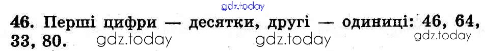 На страницах сайта gdz.today вы найдете учебный и вспомогательный материал, направленный на улучшения знаний школьной программы. ГДЗ - онлайн мир знаний Номери 1-60 Рішення до Нумерацiя чисел вiд 21 до 100 46 Учебнику по Математике для 1 класса Богданович, Лишенко Генеза 2012
