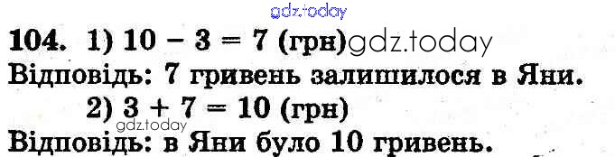 На страницах сайта gdz.today вы найдете учебный и вспомогательный материал, направленный на улучшения знаний школьной программы. ГДЗ - онлайн мир знаний Номери 61-128 Рішення до Нумерацiя чисел вiд 21 до 100 104 Учебнику по Математике для 1 класса Богданович, Лишенко Генеза 2012