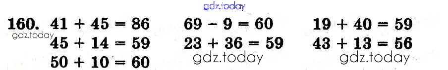 На страницах сайта gdz.today вы найдете учебный и вспомогательный материал, направленный на улучшения знаний школьной программы. ГДЗ - онлайн мир знаний Номери 129-170 Рішення до Додавання i вiднiмання двоцифрових чисел без переходу через розряд 160 Учебнику по Математике для 1 класса Богданович, Лишенко Генеза 2012
