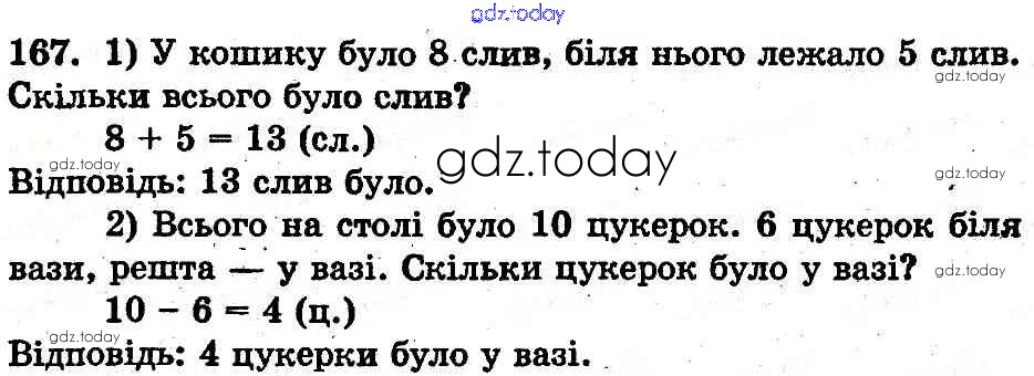 На страницах сайта gdz.today вы найдете учебный и вспомогательный материал, направленный на улучшения знаний школьной программы. ГДЗ - онлайн мир знаний Номери 129-170 Рішення до Додавання i вiднiмання двоцифрових чисел без переходу через розряд 167 Учебнику по Математике для 1 класса Богданович, Лишенко Генеза 2012