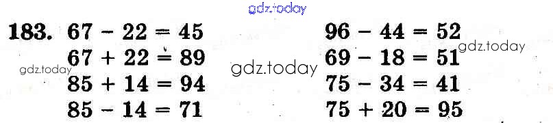 Ответы к Номери 171-213 Рішення до Додавання i вiднiмання двоцифрових чисел без переходу через розряд 183 Учебнику по Математике для 1 класса Богданович, Лишенко Генеза 2012