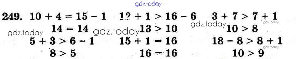 На страницах сайта gdz.today вы найдете учебный и вспомогательный материал, направленный на улучшения знаний школьной программы. ГДЗ - онлайн мир знаний Номери 214-250 Рішення до Повторення вивченого. Додавання i вiднiмання з переходом через розряд у межах 20 249 Учебнику по Математике для 1 класса Богданович, Лишенко Генеза 2012
