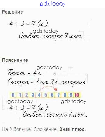 (рис.1) Брату 4 года, а сестра на 3 года старше. Сколько лет сестре? (рис.2)