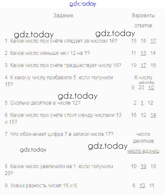 Выбери правильный ответ и подчеркни его. Варианты ответов К числу 9 20 10 число десятков число единиц