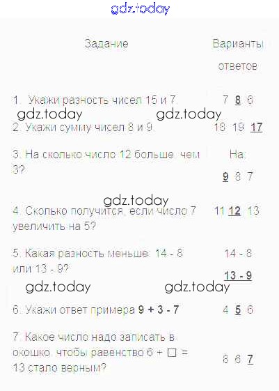 Найди правильный ответ и подчеркни его. Варианты ответов На: 9 8 7 11 12 13 14 - 8 13 - 9 8 6 7