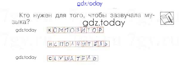 На страницах сайта gdz.today вы найдете учебный и вспомогательный материал, направленный на улучшения знаний школьной программы. ГДЗ - онлайн мир знаний Страницы (решение) 7 Рабочей тетради по Музыке для 1 класса Критская, Сергеева Просвещение Школа России, Перспектива 2018