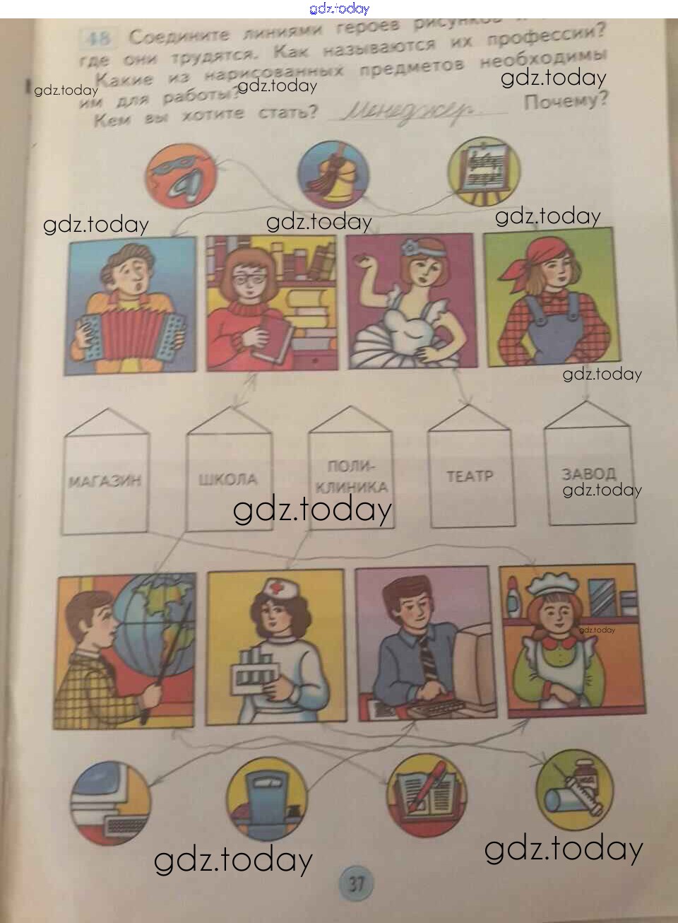 На страницах сайта gdz.today вы найдете учебный и вспомогательный материал, направленный на улучшения знаний школьной программы. ГДЗ - онлайн мир знаний Страницы (решение) 37 Рабочей тетради по Окружающему миру для 1 класса Дмитриева, Казаков Фёдоров 2016