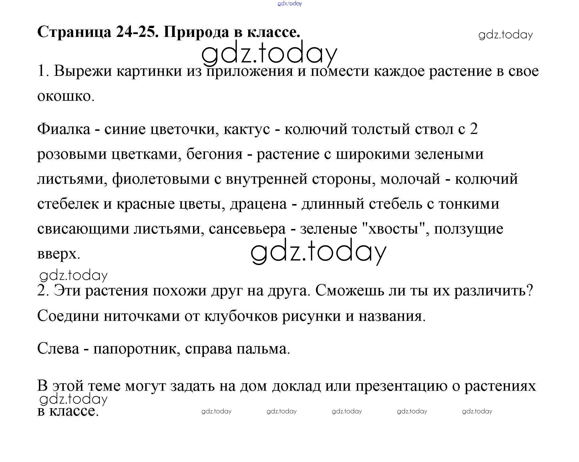 На страницах сайта gdz.today вы найдете учебный и вспомогательный материал, направленный на улучшения знаний школьной программы. ГДЗ - онлайн мир знаний Решение к части 1 (Страницы) 24-25 Рабочей тетради по Окружающему миру для 1 класса Плешаков, Новицкая Просвещение Перспектива 2016