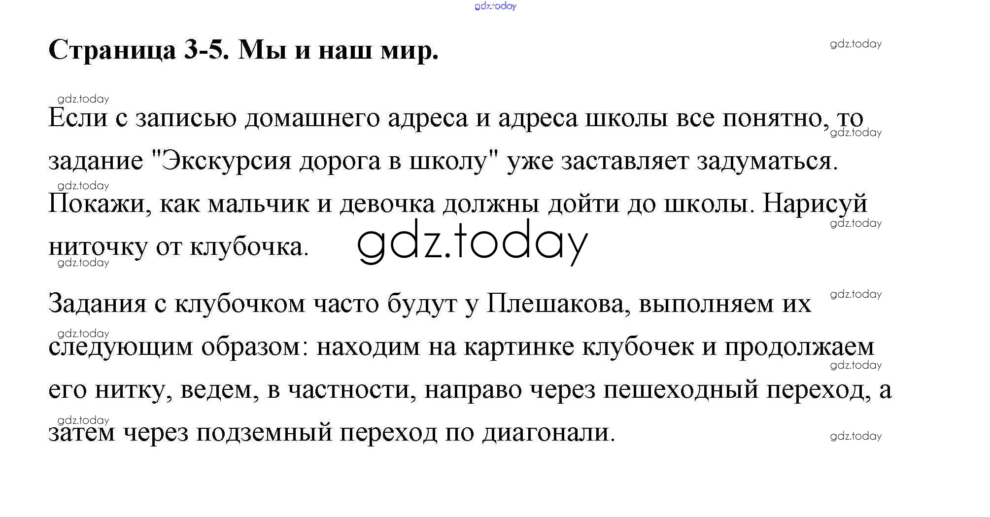На страницах сайта gdz.today вы найдете учебный и вспомогательный материал, направленный на улучшения знаний школьной программы. ГДЗ - онлайн мир знаний Решение к части 1 (Страницы) 3-5 Рабочей тетради по Окружающему миру для 1 класса Плешаков, Новицкая Просвещение Перспектива 2016