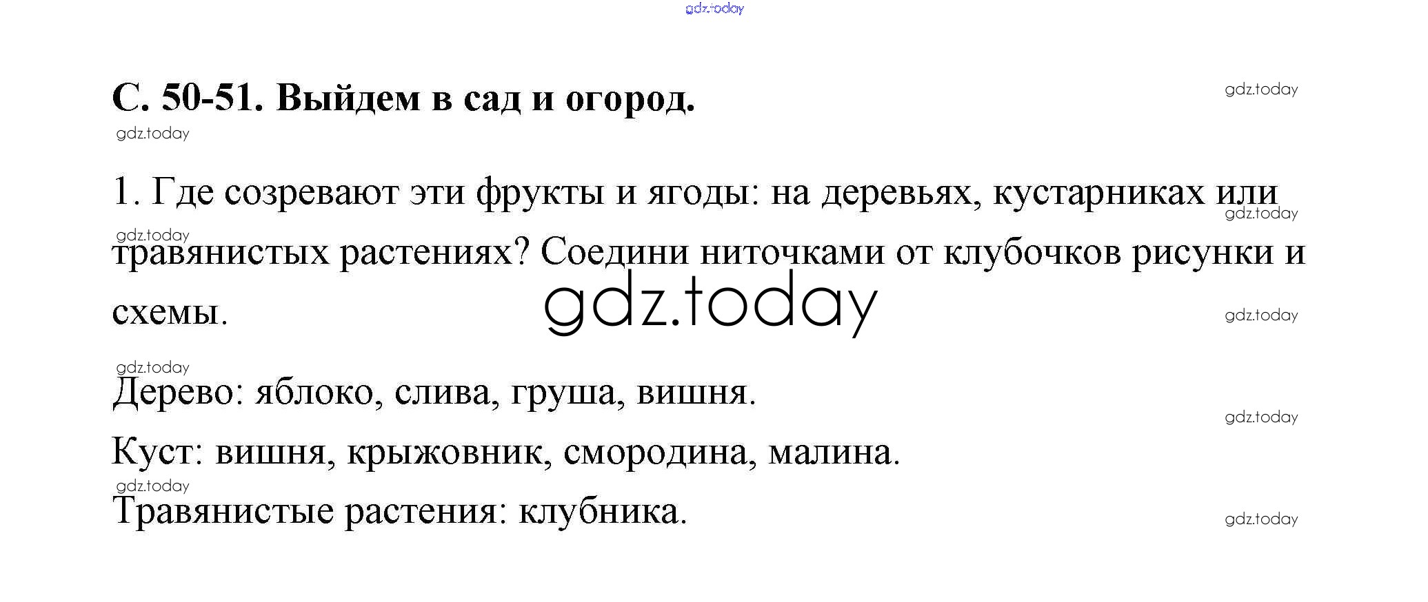 На страницах сайта gdz.today вы найдете учебный и вспомогательный материал, направленный на улучшения знаний школьной программы. ГДЗ - онлайн мир знаний Решение к части 1 (Страницы) 50-51 Рабочей тетради по Окружающему миру для 1 класса Плешаков, Новицкая Просвещение Перспектива 2016