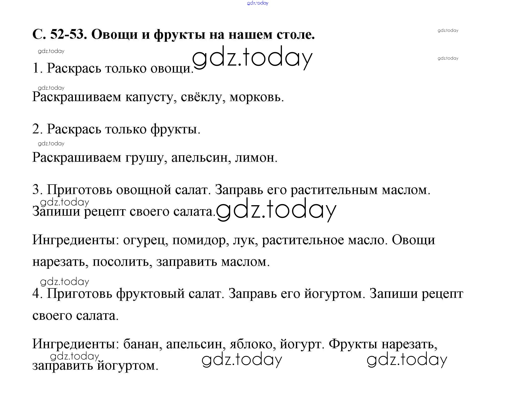На страницах сайта gdz.today вы найдете учебный и вспомогательный материал, направленный на улучшения знаний школьной программы. ГДЗ - онлайн мир знаний Решение к части 1 (Страницы) 52-53 Рабочей тетради по Окружающему миру для 1 класса Плешаков, Новицкая Просвещение Перспектива 2016