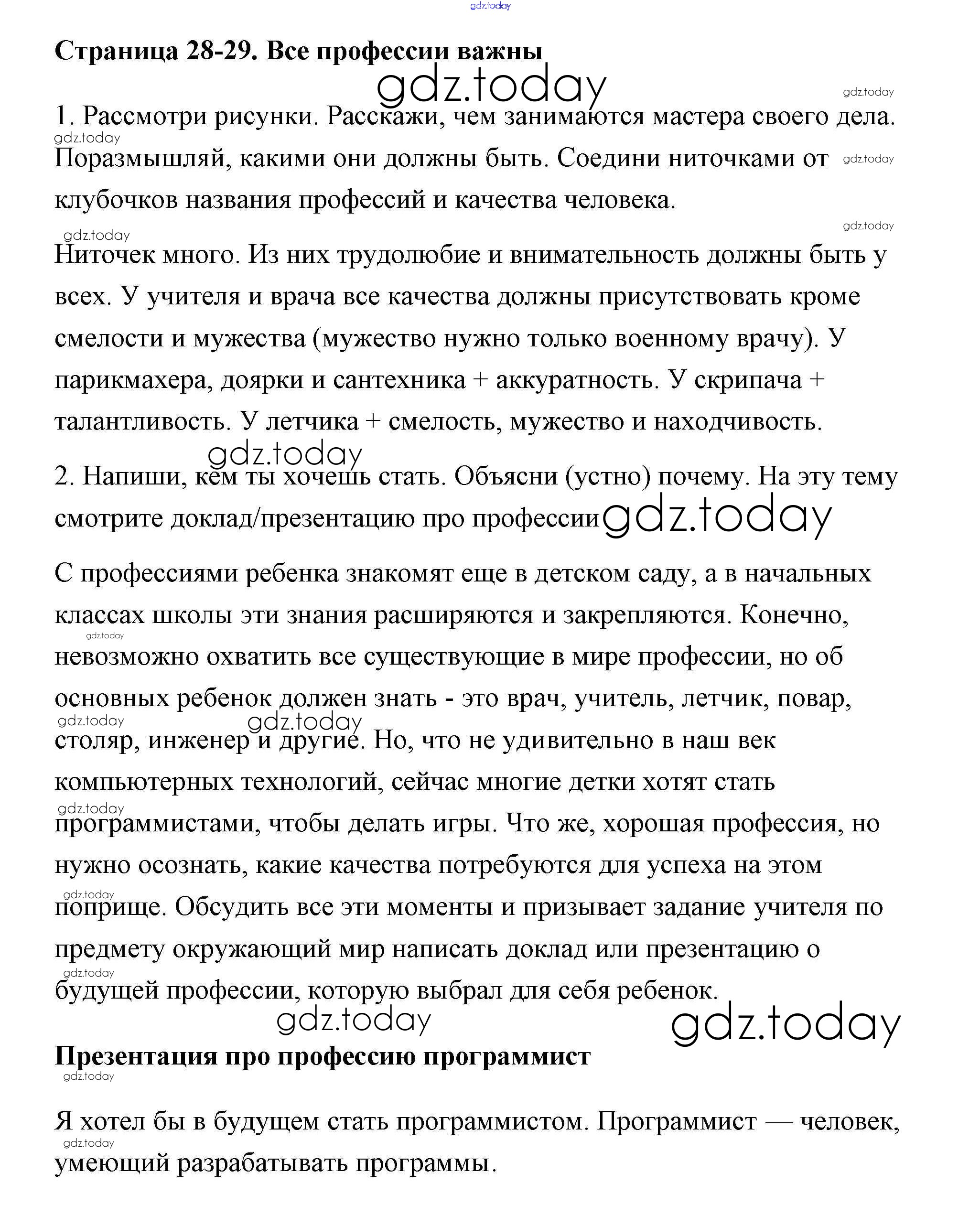 На страницах сайта gdz.today вы найдете учебный и вспомогательный материал, направленный на улучшения знаний школьной программы. ГДЗ - онлайн мир знаний Решение к части 2 (Страницы) 28-29 Рабочей тетради по Окружающему миру для 1 класса Плешаков, Новицкая Просвещение Перспектива 2016