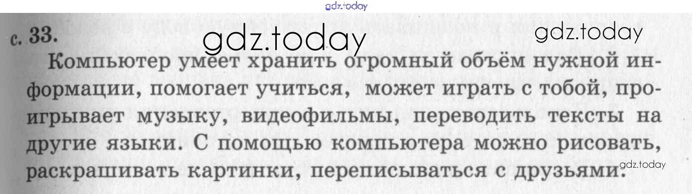 На страницах сайта gdz.today вы найдете учебный и вспомогательный материал, направленный на улучшения знаний школьной программы. ГДЗ - онлайн мир знаний Страницы (решение)  33 Учебнику по Окружающему миру для 1 класса Плешаков  Просвещение  2007