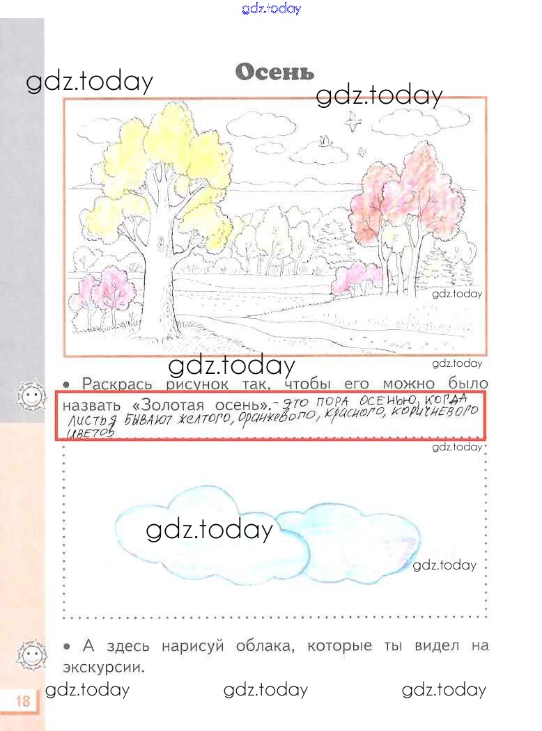 На страницах сайта gdz.today вы найдете учебный и вспомогательный материал, направленный на улучшения знаний школьной программы. ГДЗ - онлайн мир знаний Решение к части 1. Страницы 18 Рабочей тетради по Окружающему миру для 1 класса Ивченкова, Потапов Дрофа Планета знаний 2018