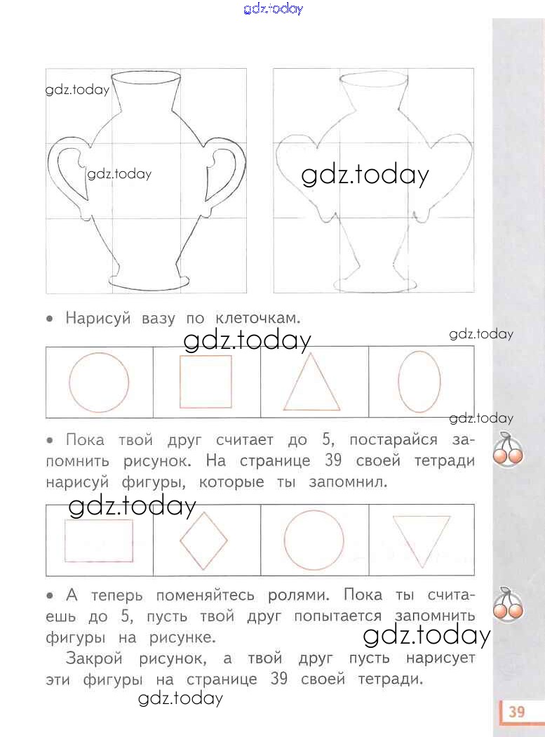 На страницах сайта gdz.today вы найдете учебный и вспомогательный материал, направленный на улучшения знаний школьной программы. ГДЗ - онлайн мир знаний Решение к части 1. Страницы 39 Рабочей тетради по Окружающему миру для 1 класса Ивченкова, Потапов Дрофа Планета знаний 2018