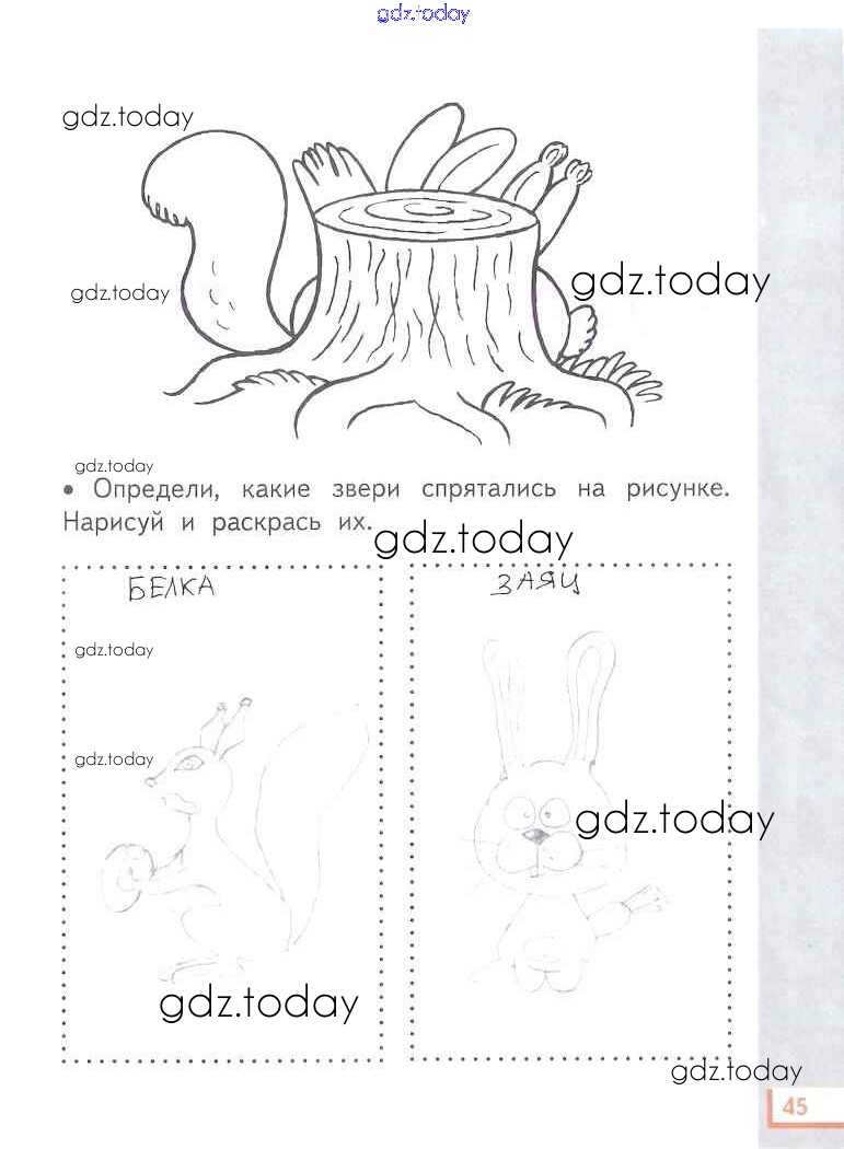 На страницах сайта gdz.today вы найдете учебный и вспомогательный материал, направленный на улучшения знаний школьной программы. ГДЗ - онлайн мир знаний Решение к части 1. Страницы 45 Рабочей тетради по Окружающему миру для 1 класса Ивченкова, Потапов Дрофа Планета знаний 2018