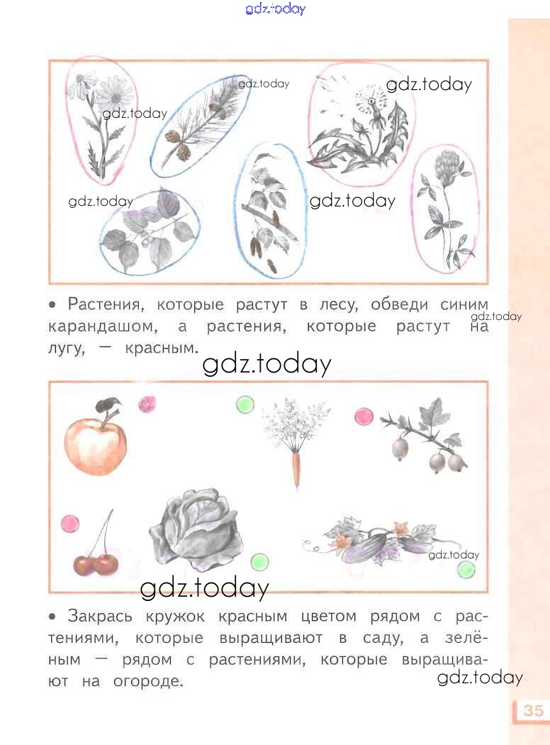 На страницах сайта gdz.today вы найдете учебный и вспомогательный материал, направленный на улучшения знаний школьной программы. ГДЗ - онлайн мир знаний Решение к части 2. Страницы 35 Рабочей тетради по Окружающему миру для 1 класса Ивченкова, Потапов Дрофа Планета знаний 2018