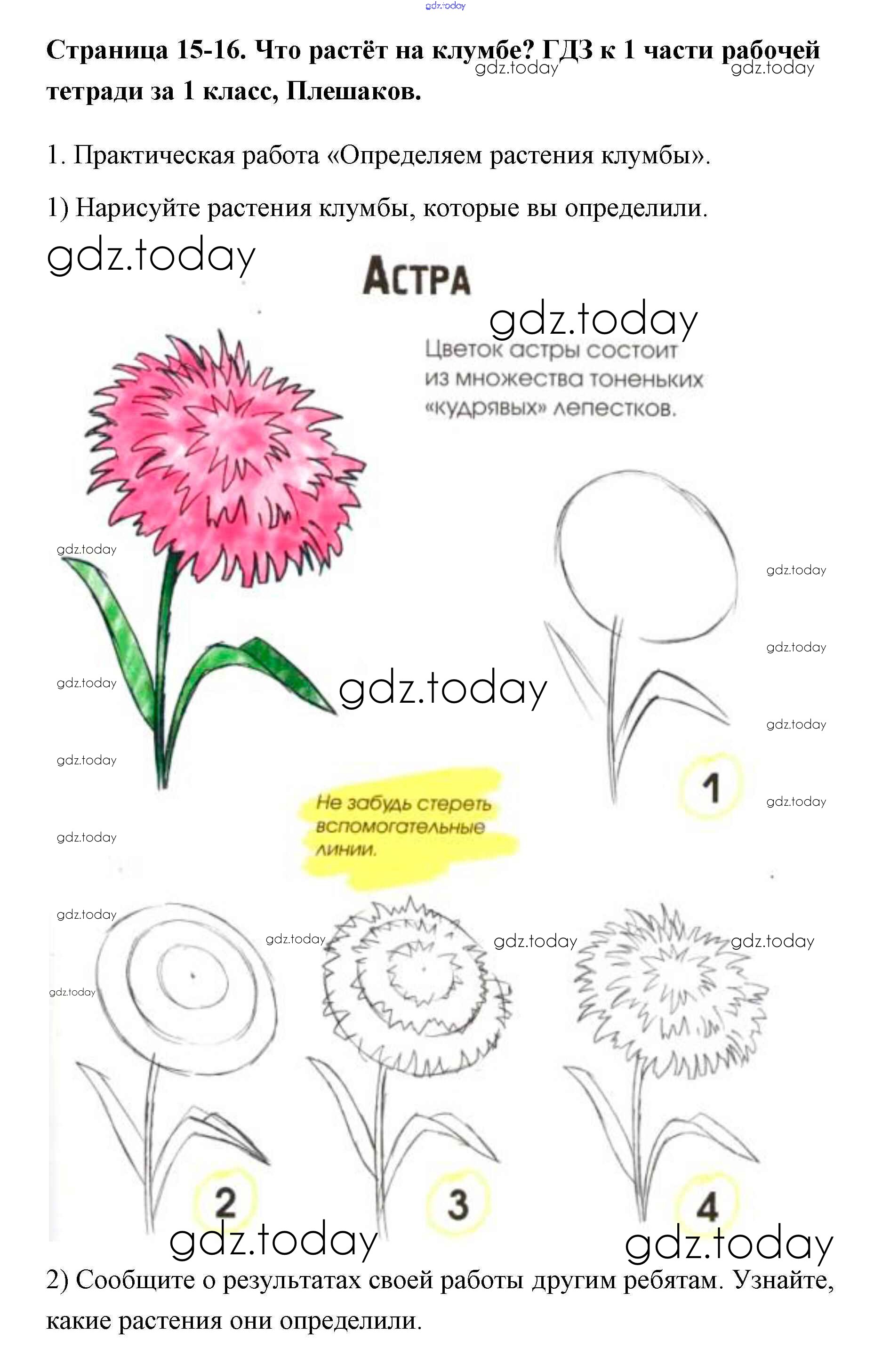 На страницах сайта gdz.today вы найдете учебный и вспомогательный материал, направленный на улучшения знаний школьной программы. ГДЗ - онлайн мир знаний Решение к части 1 (Страницы) 15-16 Рабочей тетради по Окружающему миру для 1 класса Плешаков Просвещение Школа России 2016