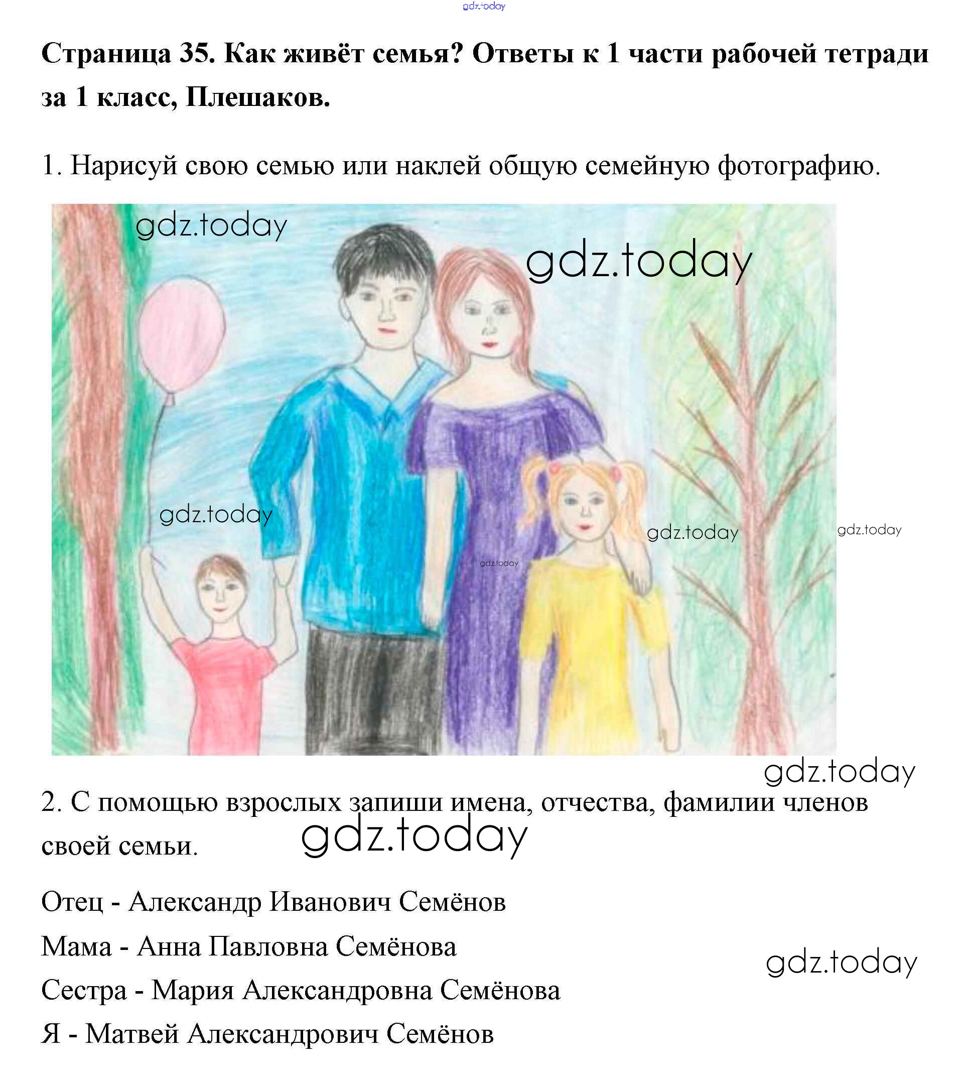 На страницах сайта gdz.today вы найдете учебный и вспомогательный материал, направленный на улучшения знаний школьной программы. ГДЗ - онлайн мир знаний Решение к части 1 (Страницы) 35 Рабочей тетради по Окружающему миру для 1 класса Плешаков Просвещение Школа России 2016