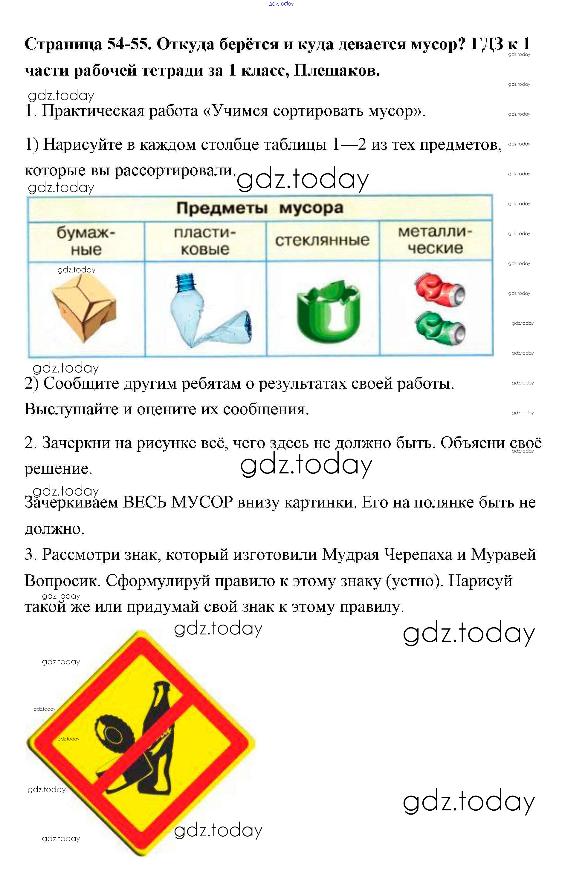На страницах сайта gdz.today вы найдете учебный и вспомогательный материал, направленный на улучшения знаний школьной программы. ГДЗ - онлайн мир знаний Решение к части 1 (Страницы) 54-55 Рабочей тетради по Окружающему миру для 1 класса Плешаков Просвещение Школа России 2016