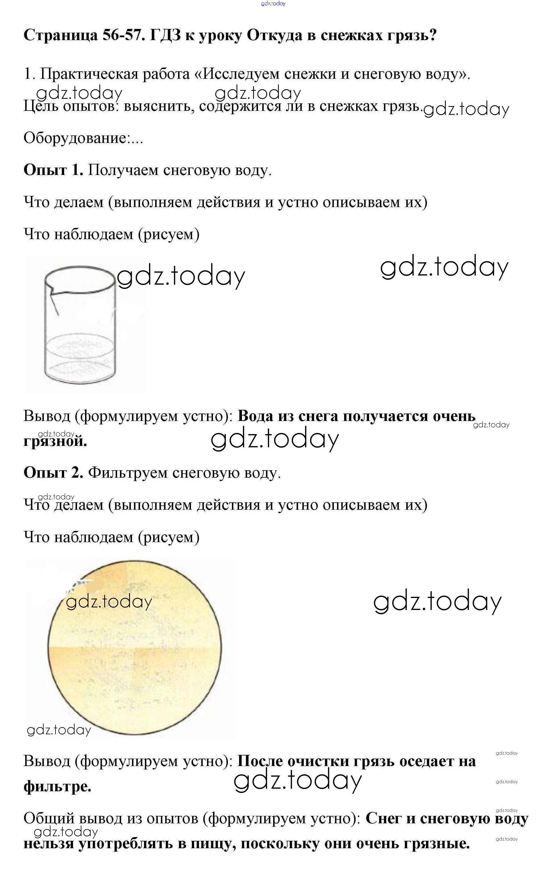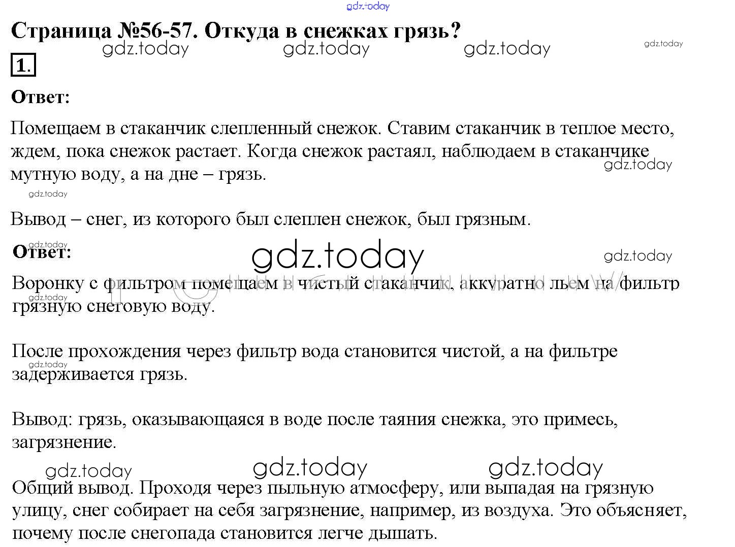 На страницах сайта gdz.today вы найдете учебный и вспомогательный материал, направленный на улучшения знаний школьной программы. ГДЗ - онлайн мир знаний Решение к части 1 (Страницы) 56-57 Рабочей тетради по Окружающему миру для 1 класса Плешаков Просвещение Школа России 2016