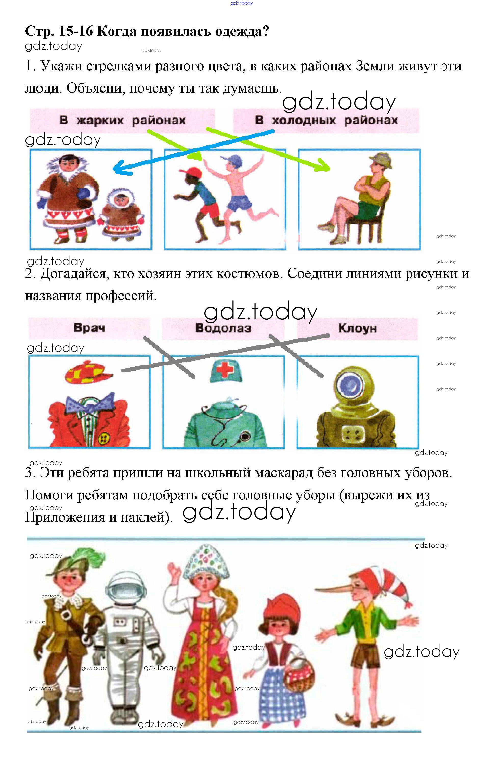 На страницах сайта gdz.today вы найдете учебный и вспомогательный материал, направленный на улучшения знаний школьной программы. ГДЗ - онлайн мир знаний Решение к части 2 (Страницы) 15-16 Рабочей тетради по Окружающему миру для 1 класса Плешаков Просвещение Школа России 2016