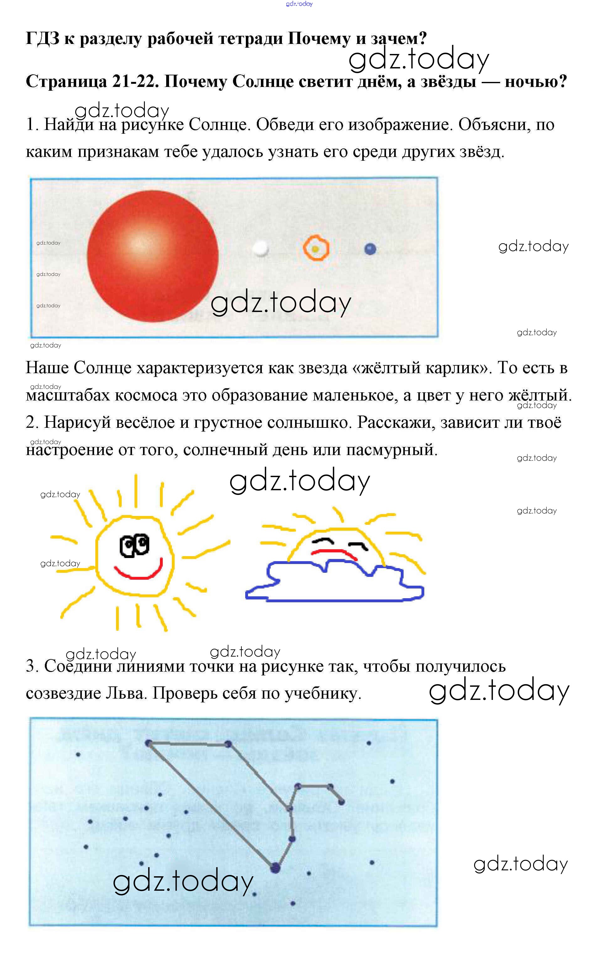 На страницах сайта gdz.today вы найдете учебный и вспомогательный материал, направленный на улучшения знаний школьной программы. ГДЗ - онлайн мир знаний Решение к части 2 (Страницы) 21-22 Рабочей тетради по Окружающему миру для 1 класса Плешаков Просвещение Школа России 2016