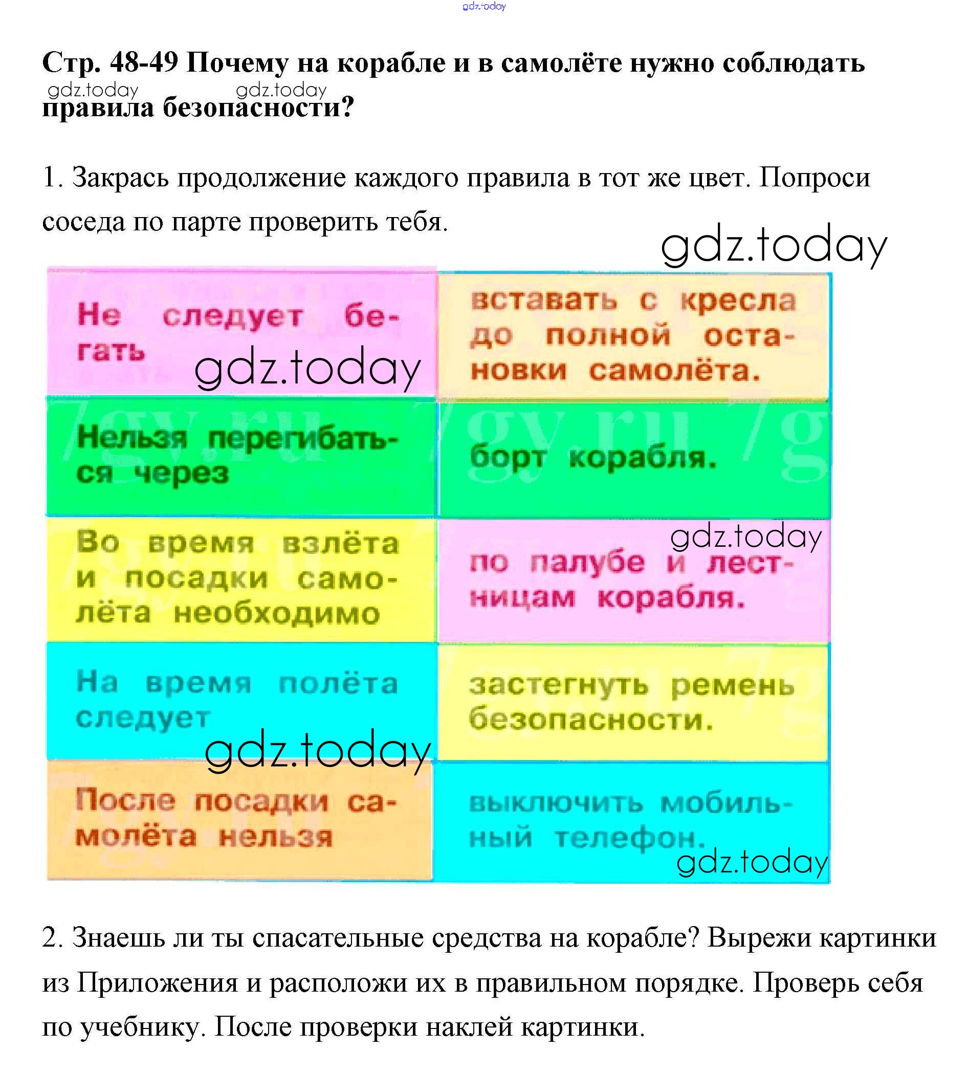 На страницах сайта gdz.today вы найдете учебный и вспомогательный материал, направленный на улучшения знаний школьной программы. ГДЗ - онлайн мир знаний Решение к части 2 (Страницы) 48-49 Рабочей тетради по Окружающему миру для 1 класса Плешаков Просвещение Школа России 2016