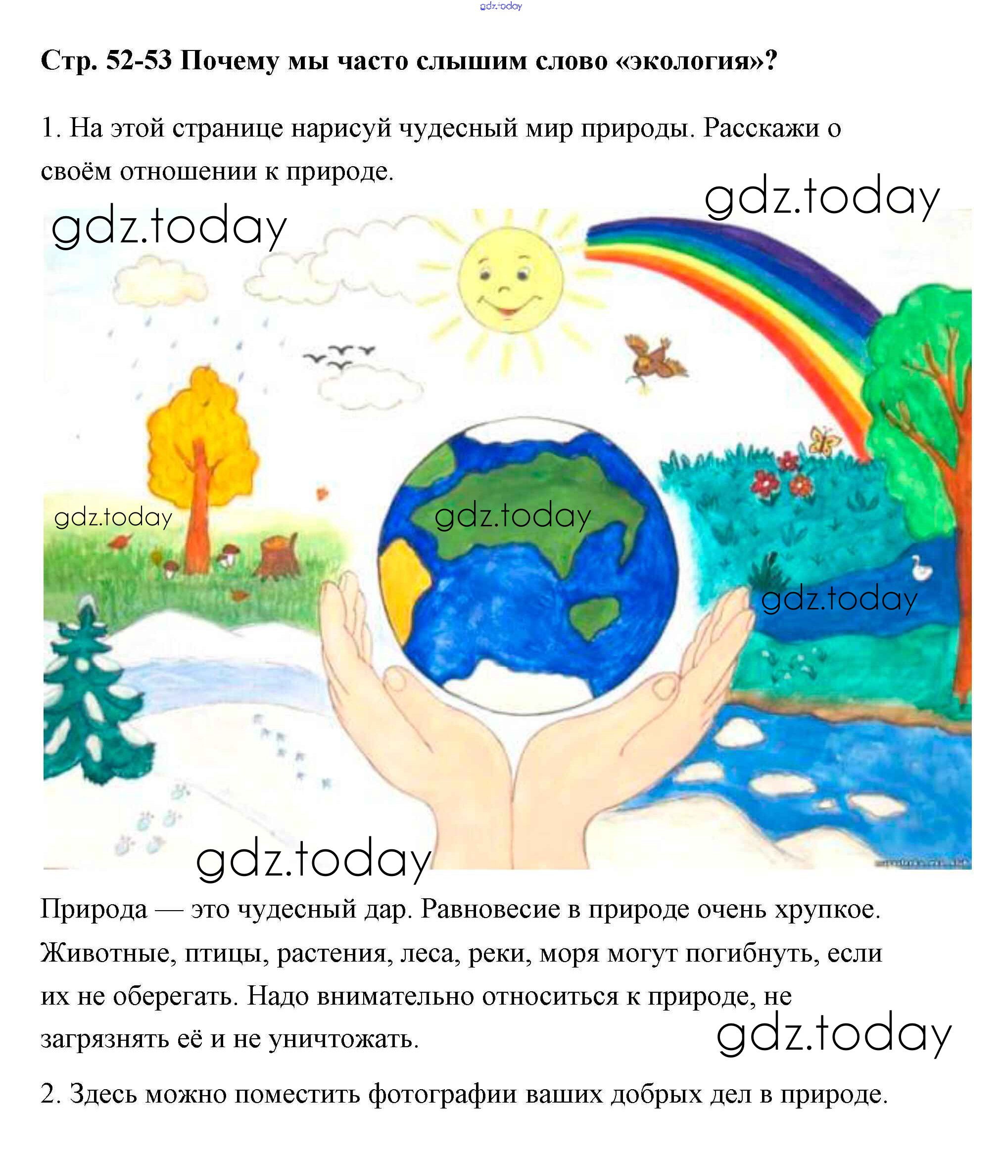 На страницах сайта gdz.today вы найдете учебный и вспомогательный материал, направленный на улучшения знаний школьной программы. ГДЗ - онлайн мир знаний Решение к части 2 (Страницы) 52-53 Рабочей тетради по Окружающему миру для 1 класса Плешаков Просвещение Школа России 2016