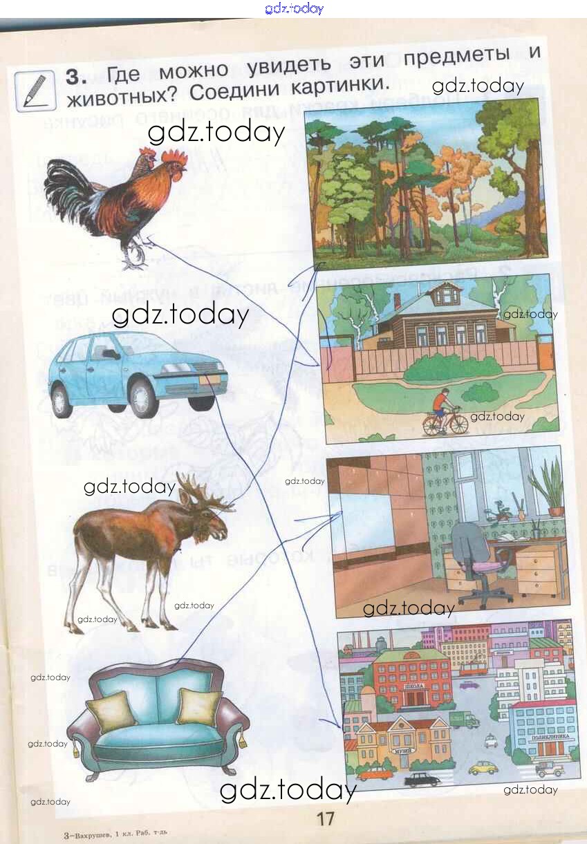 На страницах сайта gdz.today вы найдете учебный и вспомогательный материал, направленный на улучшения знаний школьной программы. ГДЗ - онлайн мир знаний Страницы (решение) 17 Рабочей тетради по Окружающему миру для 1 класса Вахрушев, Бурский Баласс Школа 2100 2015