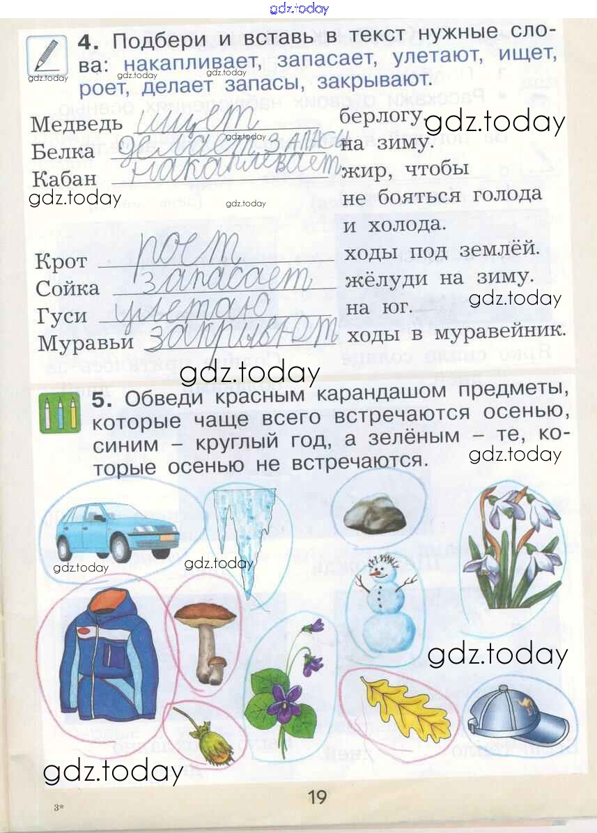 На страницах сайта gdz.today вы найдете учебный и вспомогательный материал, направленный на улучшения знаний школьной программы. ГДЗ - онлайн мир знаний Страницы (решение) 19 Рабочей тетради по Окружающему миру для 1 класса Вахрушев, Бурский Баласс Школа 2100 2015