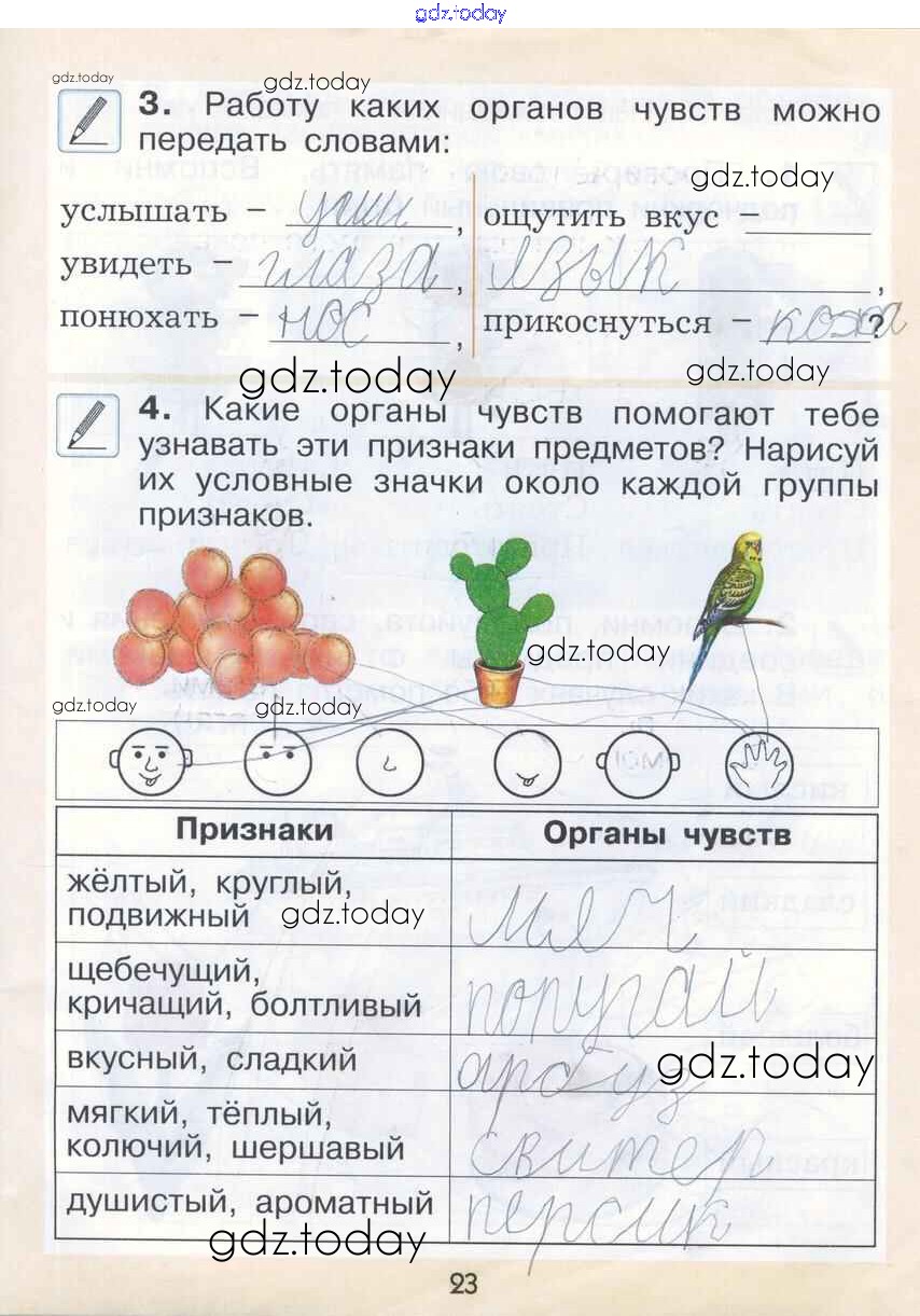 На страницах сайта gdz.today вы найдете учебный и вспомогательный материал, направленный на улучшения знаний школьной программы. ГДЗ - онлайн мир знаний Страницы (решение) 23 Рабочей тетради по Окружающему миру для 1 класса Вахрушев, Бурский Баласс Школа 2100 2015