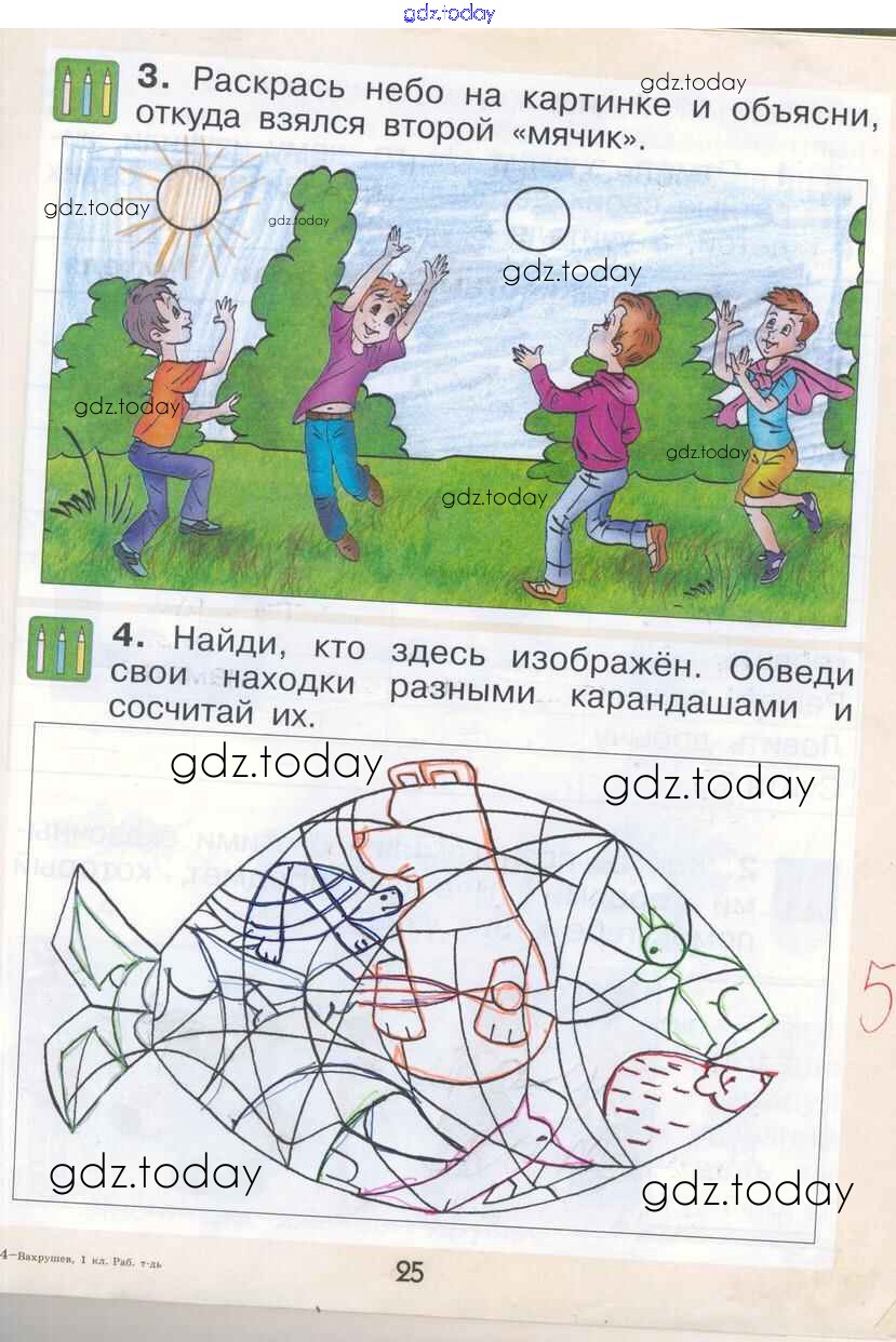 На страницах сайта gdz.today вы найдете учебный и вспомогательный материал, направленный на улучшения знаний школьной программы. ГДЗ - онлайн мир знаний Страницы (решение) 25 Рабочей тетради по Окружающему миру для 1 класса Вахрушев, Бурский Баласс Школа 2100 2015