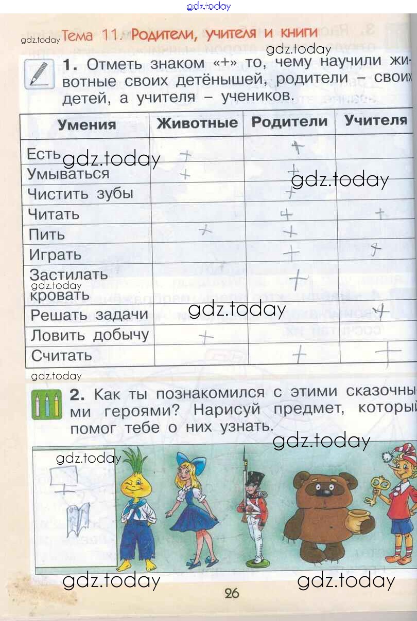На страницах сайта gdz.today вы найдете учебный и вспомогательный материал, направленный на улучшения знаний школьной программы. ГДЗ - онлайн мир знаний Страницы (решение) 26 Рабочей тетради по Окружающему миру для 1 класса Вахрушев, Бурский Баласс Школа 2100 2015