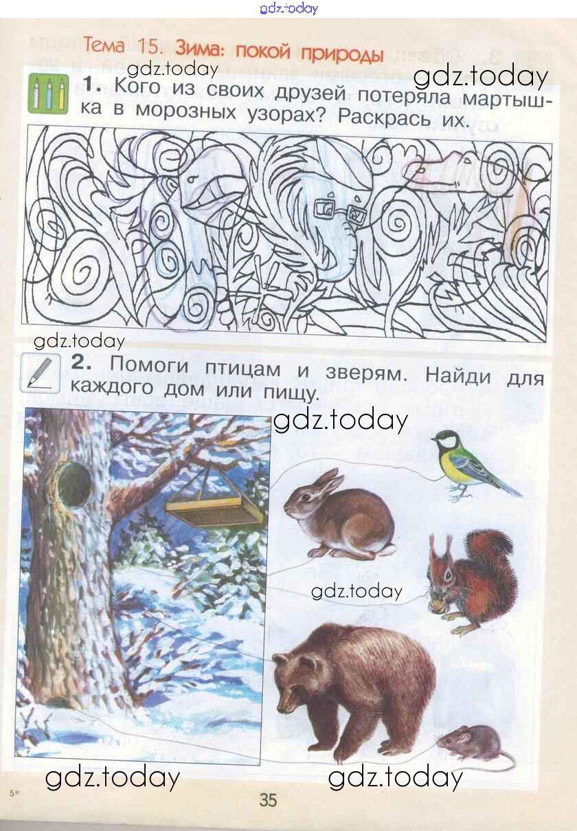 На страницах сайта gdz.today вы найдете учебный и вспомогательный материал, направленный на улучшения знаний школьной программы. ГДЗ - онлайн мир знаний Страницы (решение) 35 Рабочей тетради по Окружающему миру для 1 класса Вахрушев, Бурский Баласс Школа 2100 2015