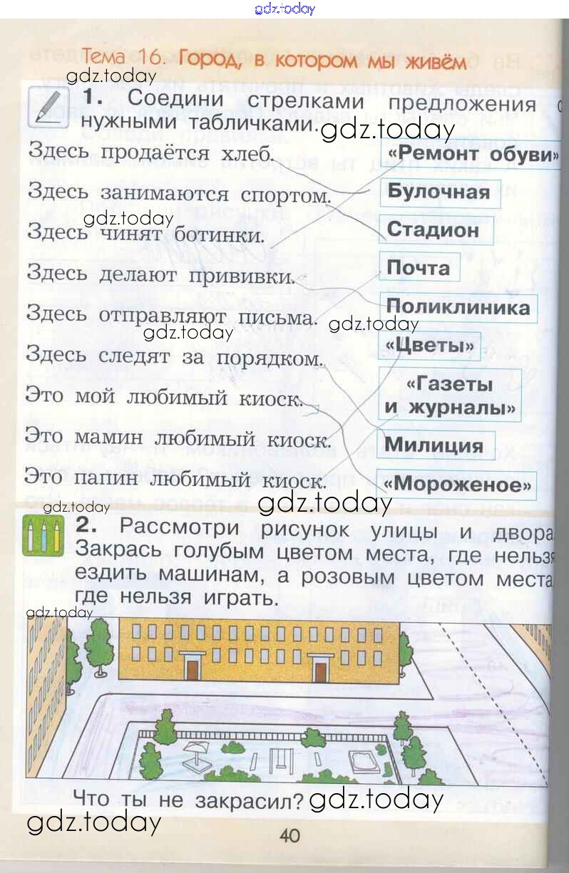 На страницах сайта gdz.today вы найдете учебный и вспомогательный материал, направленный на улучшения знаний школьной программы. ГДЗ - онлайн мир знаний Страницы (решение) 40 Рабочей тетради по Окружающему миру для 1 класса Вахрушев, Бурский Баласс Школа 2100 2015
