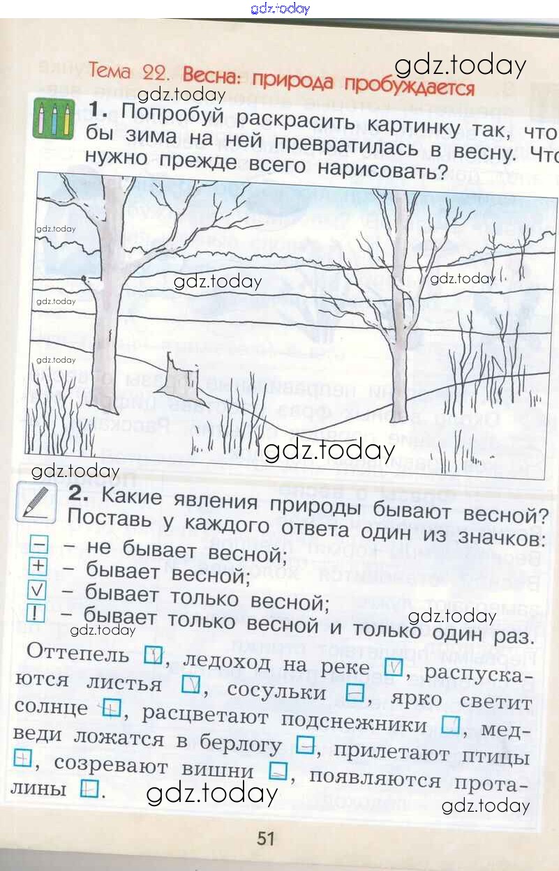 На страницах сайта gdz.today вы найдете учебный и вспомогательный материал, направленный на улучшения знаний школьной программы. ГДЗ - онлайн мир знаний Страницы (решение) 51 Рабочей тетради по Окружающему миру для 1 класса Вахрушев, Бурский Баласс Школа 2100 2015