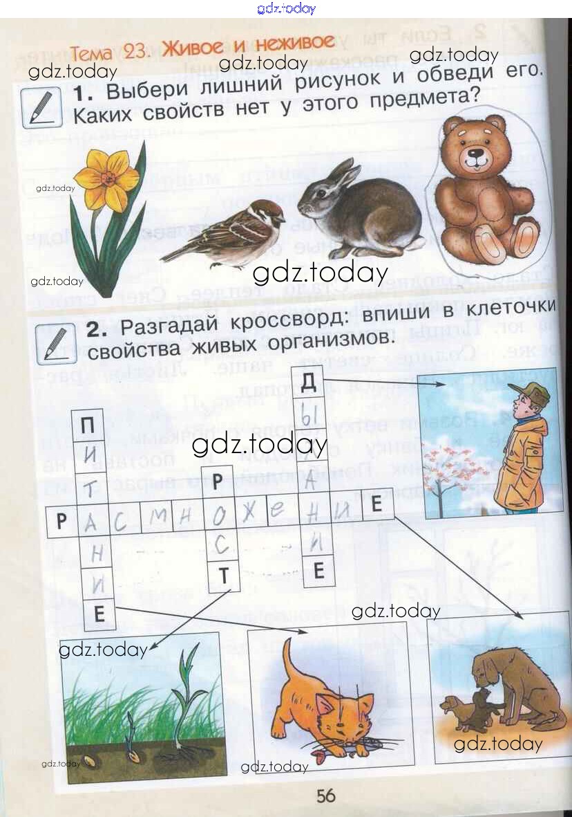 На страницах сайта gdz.today вы найдете учебный и вспомогательный материал, направленный на улучшения знаний школьной программы. ГДЗ - онлайн мир знаний Страницы (решение) 56 Рабочей тетради по Окружающему миру для 1 класса Вахрушев, Бурский Баласс Школа 2100 2015