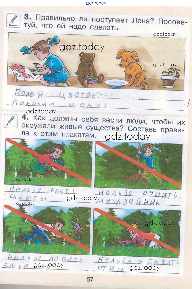 На страницах сайта gdz.today вы найдете учебный и вспомогательный материал, направленный на улучшения знаний школьной программы. ГДЗ - онлайн мир знаний Страницы (решение) 57 Рабочей тетради по Окружающему миру для 1 класса Вахрушев, Бурский Баласс Школа 2100 2015