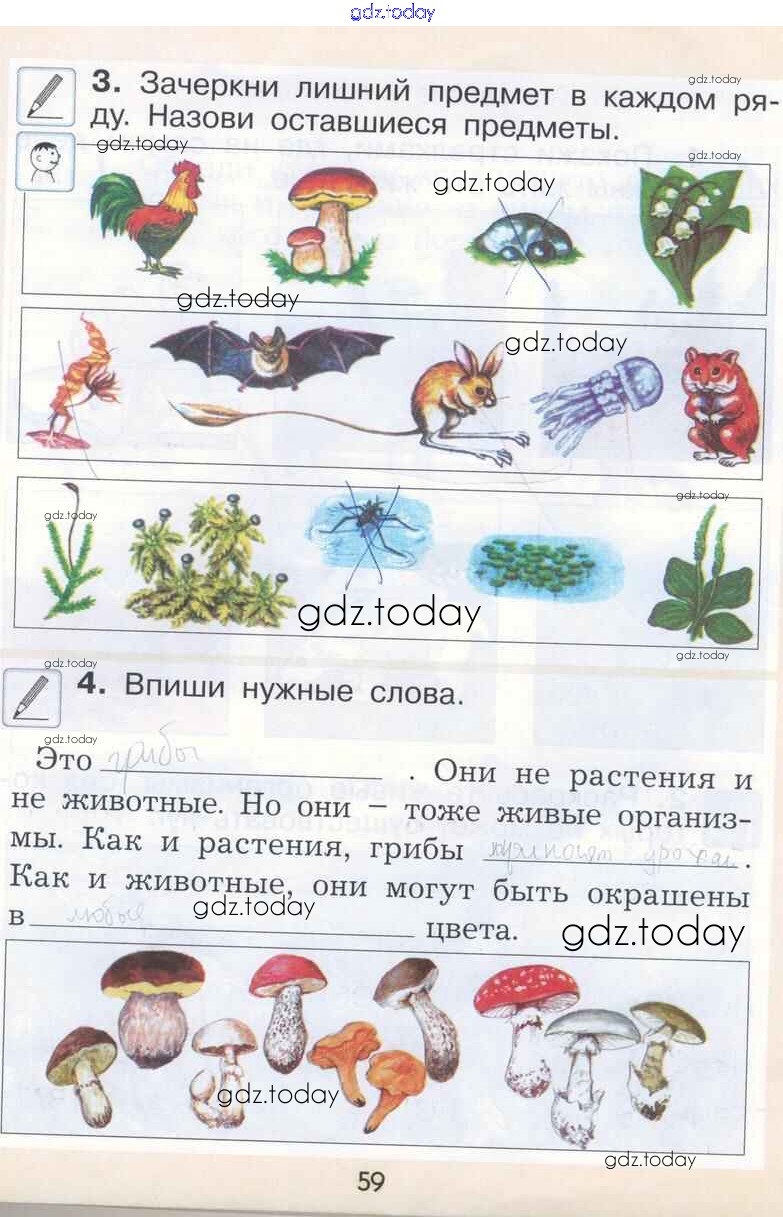 На страницах сайта gdz.today вы найдете учебный и вспомогательный материал, направленный на улучшения знаний школьной программы. ГДЗ - онлайн мир знаний Страницы (решение) 59 Рабочей тетради по Окружающему миру для 1 класса Вахрушев, Бурский Баласс Школа 2100 2015
