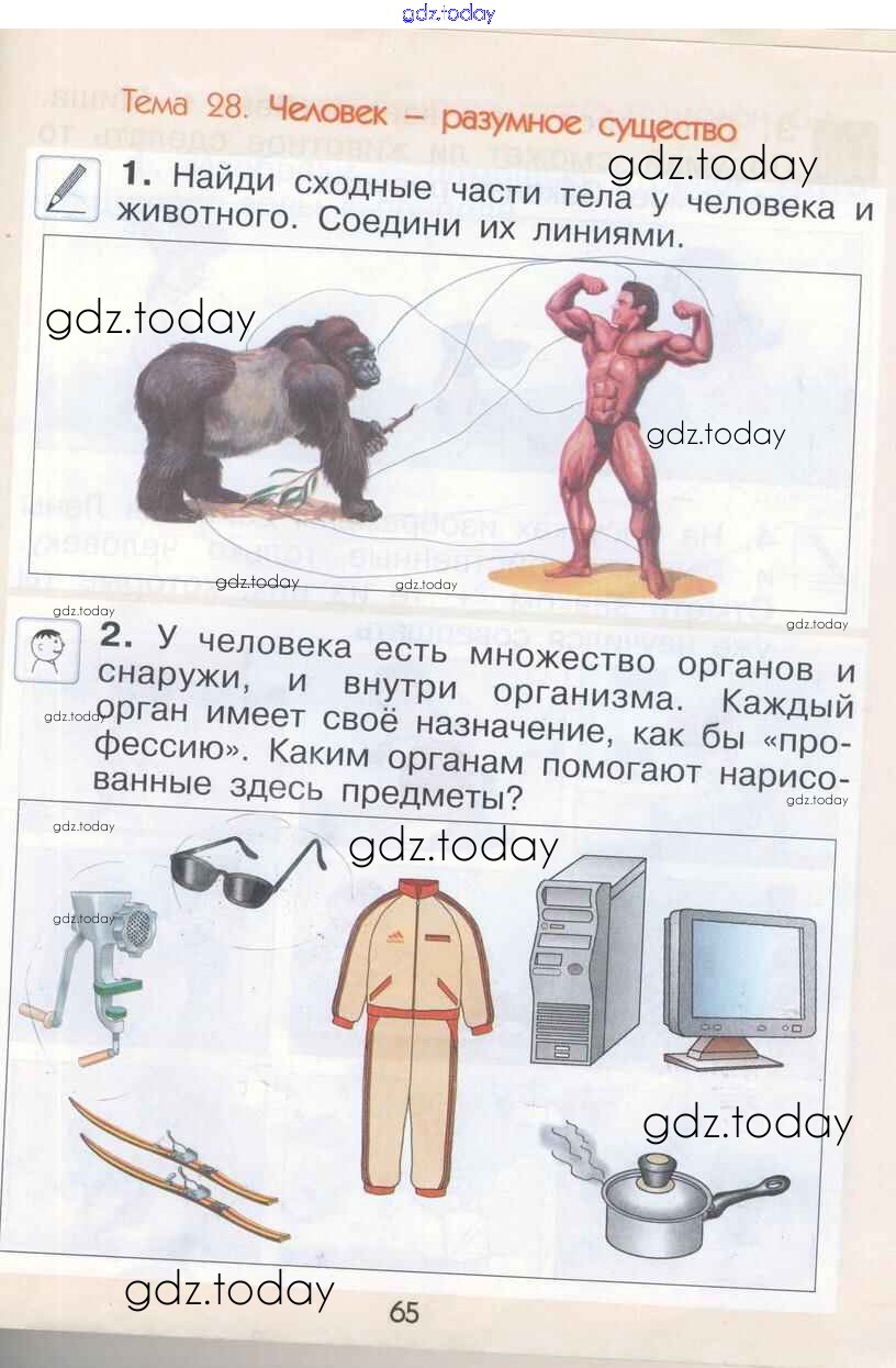 На страницах сайта gdz.today вы найдете учебный и вспомогательный материал, направленный на улучшения знаний школьной программы. ГДЗ - онлайн мир знаний Страницы (решение) 65 Рабочей тетради по Окружающему миру для 1 класса Вахрушев, Бурский Баласс Школа 2100 2015