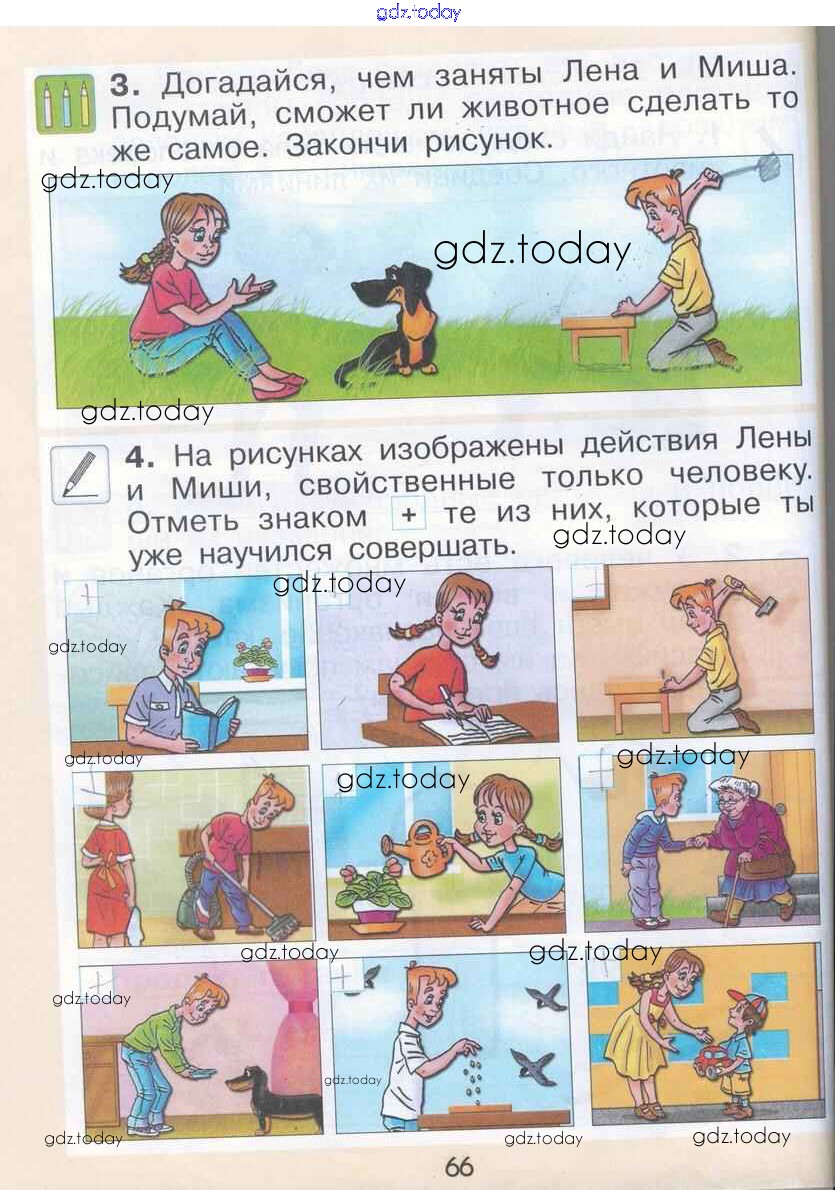 На страницах сайта gdz.today вы найдете учебный и вспомогательный материал, направленный на улучшения знаний школьной программы. ГДЗ - онлайн мир знаний Страницы (решение) 66 Рабочей тетради по Окружающему миру для 1 класса Вахрушев, Бурский Баласс Школа 2100 2015