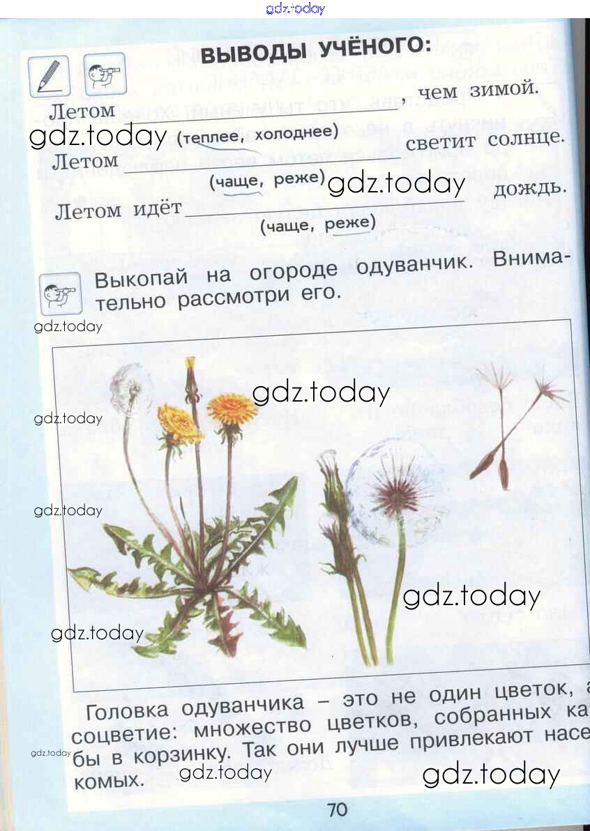На страницах сайта gdz.today вы найдете учебный и вспомогательный материал, направленный на улучшения знаний школьной программы. ГДЗ - онлайн мир знаний Страницы (решение) 70 Рабочей тетради по Окружающему миру для 1 класса Вахрушев, Бурский Баласс Школа 2100 2015