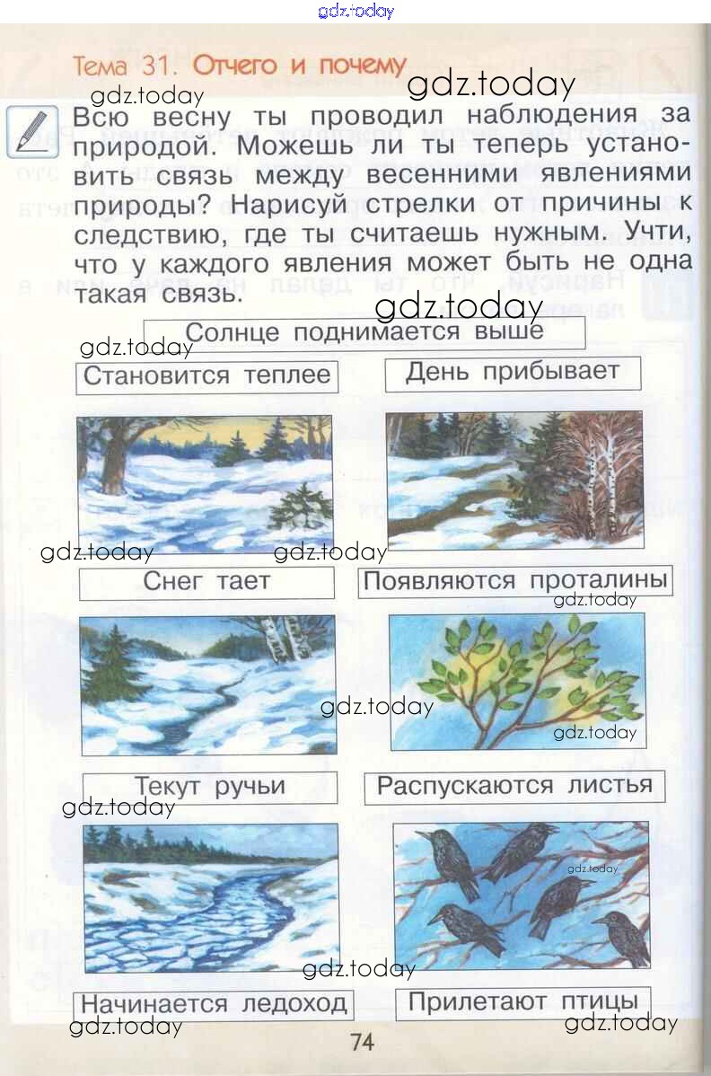 На страницах сайта gdz.today вы найдете учебный и вспомогательный материал, направленный на улучшения знаний школьной программы. ГДЗ - онлайн мир знаний Страницы (решение) 74 Рабочей тетради по Окружающему миру для 1 класса Вахрушев, Бурский Баласс Школа 2100 2015