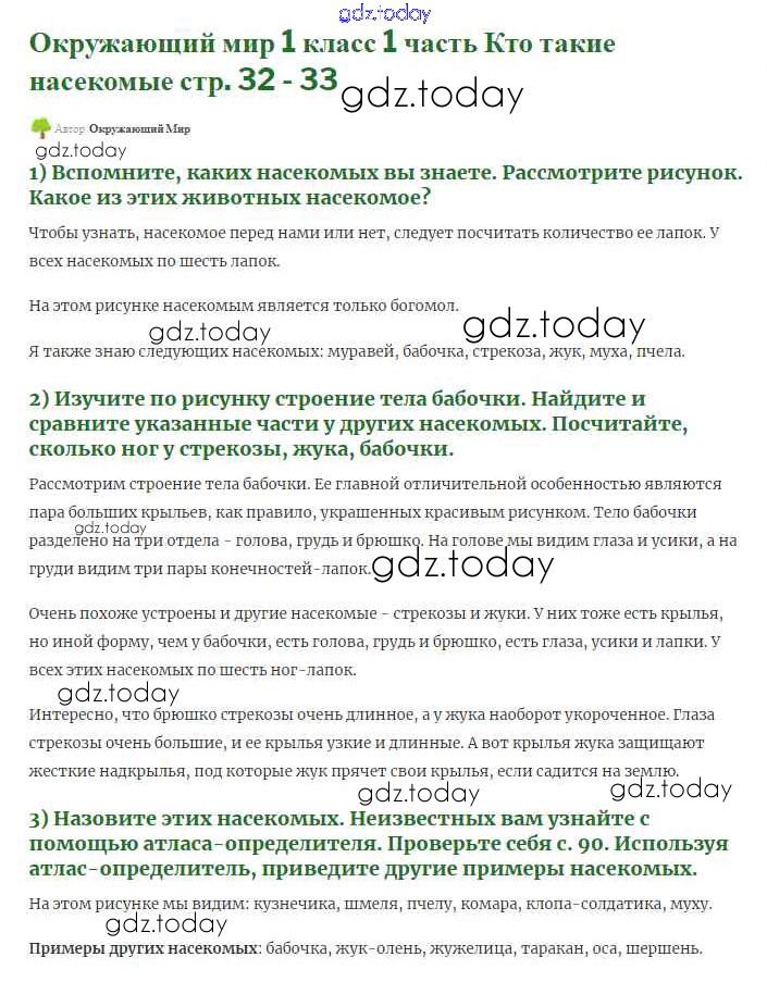 На страницах сайта gdz.today вы найдете учебный и вспомогательный материал, направленный на улучшения знаний школьной программы. ГДЗ - онлайн мир знаний Решение к части 1 (Страниицы) 32-33 Учебнику по Окружающему миру для 1 класса Плешаков Просвещение Школа России 2017