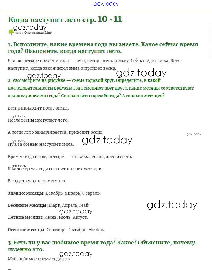 На страницах сайта gdz.today вы найдете учебный и вспомогательный материал, направленный на улучшения знаний школьной программы. ГДЗ - онлайн мир знаний Решение к части 2 (Страниицы) 10-11 Учебнику по Окружающему миру для 1 класса Плешаков Просвещение Школа России 2017