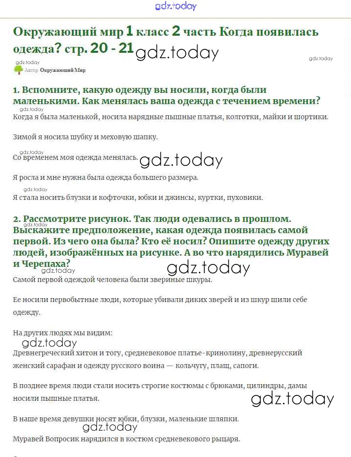 На страницах сайта gdz.today вы найдете учебный и вспомогательный материал, направленный на улучшения знаний школьной программы. ГДЗ - онлайн мир знаний Решение к части 2 (Страниицы) 20-21 Учебнику по Окружающему миру для 1 класса Плешаков Просвещение Школа России 2017