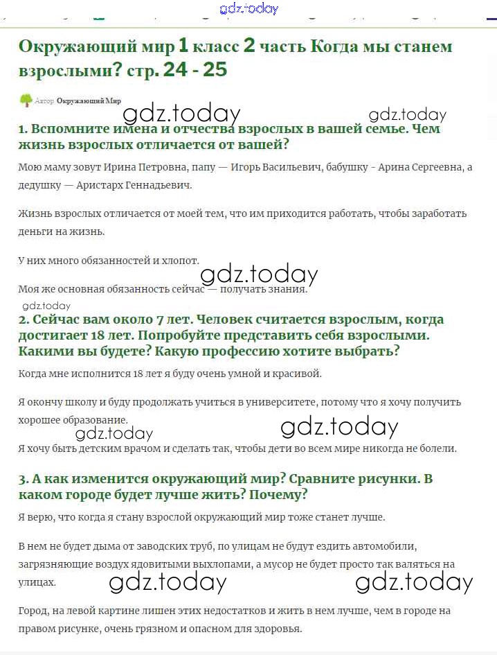 На страницах сайта gdz.today вы найдете учебный и вспомогательный материал, направленный на улучшения знаний школьной программы. ГДЗ - онлайн мир знаний Решение к части 2 (Страниицы) 24-25 Учебнику по Окружающему миру для 1 класса Плешаков Просвещение Школа России 2017