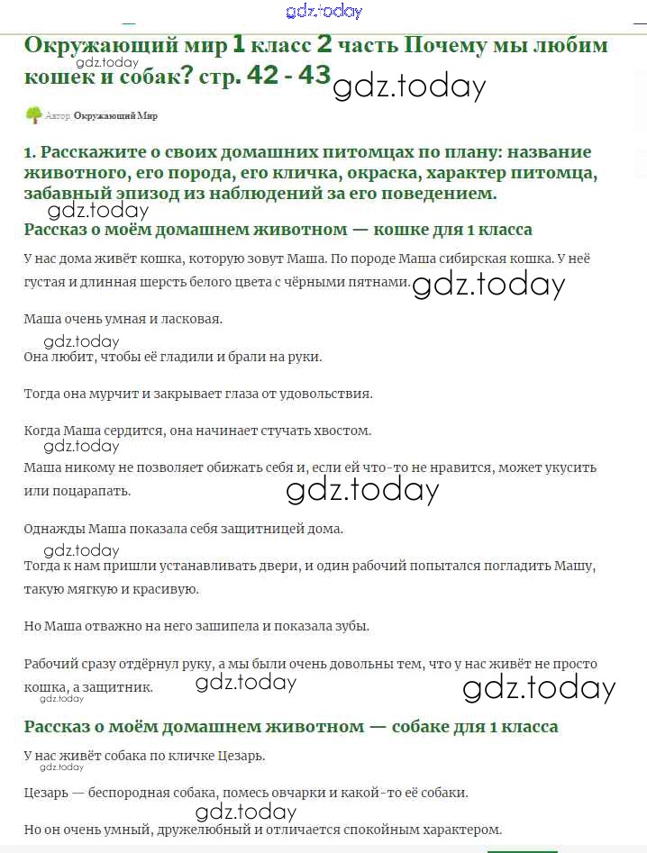 На страницах сайта gdz.today вы найдете учебный и вспомогательный материал, направленный на улучшения знаний школьной программы. ГДЗ - онлайн мир знаний Решение к части 2 (Страниицы) 42-43 Учебнику по Окружающему миру для 1 класса Плешаков Просвещение Школа России 2017